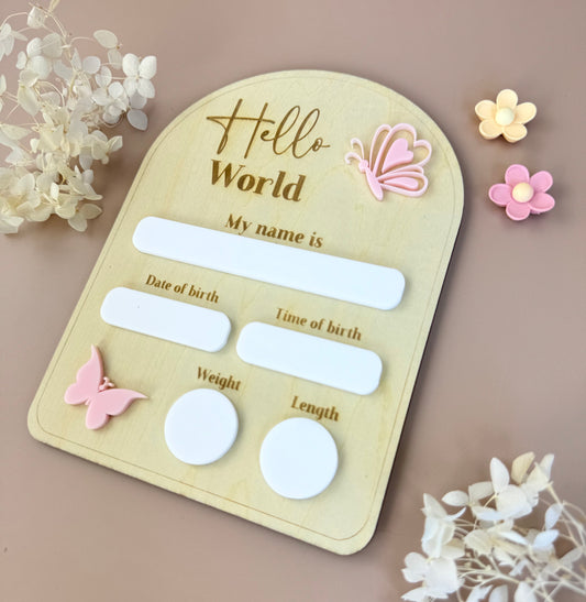 Birth Plaque - Hello World - Butterflies