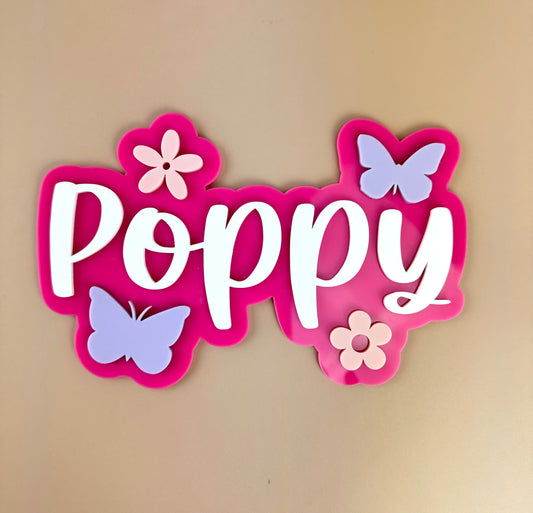 Custom Name Sign Detailed | Layered acrylic name plaque -Butterfly Garden